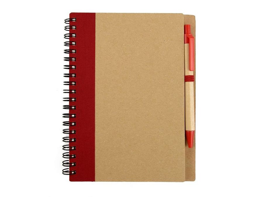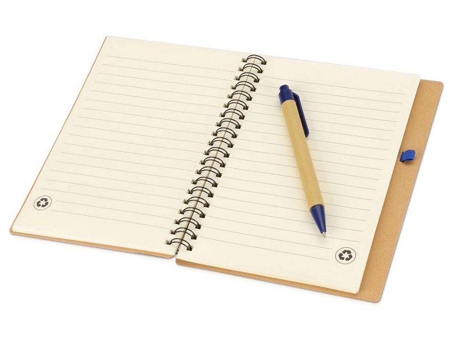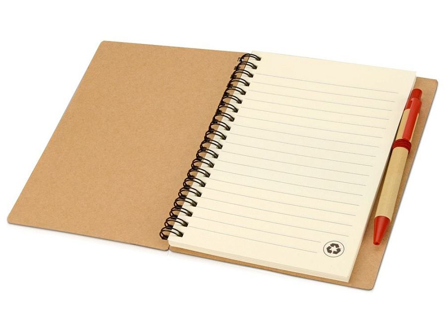 Блокнот с 60 листами переработанной бумаги 70 г/м2 и картонной ручкой в цвет блокнота.