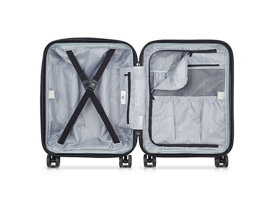 - Чемодан оснащен четырьмя бесшумными и очень маневренными колесами. Прочные и разнонаправленные, они были специально разработаны для обеспечения повышенного комфорта при движении.