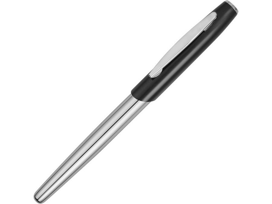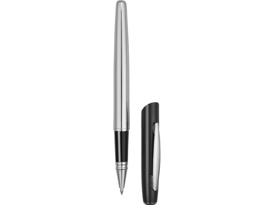 Изящная ручка-роллер с матовой верхней частью и блестящей хромированной нижней частью и соответствующими хромированными вставками.