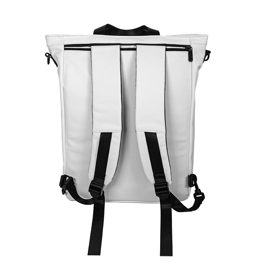 Рюкзак-сумка из 100% полиуретана. Можно использовать как сумку через плечо, можно носить как рюкзак. Лямки можно спрятать в карман. Ручка отстёгивается. Объём 15 литров.