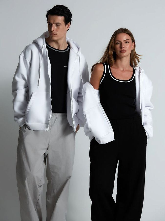 Толстовка на молнии с капюшоном унисекс King, белая, артикул WU03K001