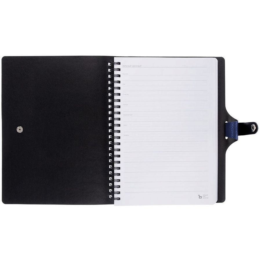 Ежедневник с гибкой обложкой, выполнен из материалов La Fite, синий НН и Waltz черный АА.