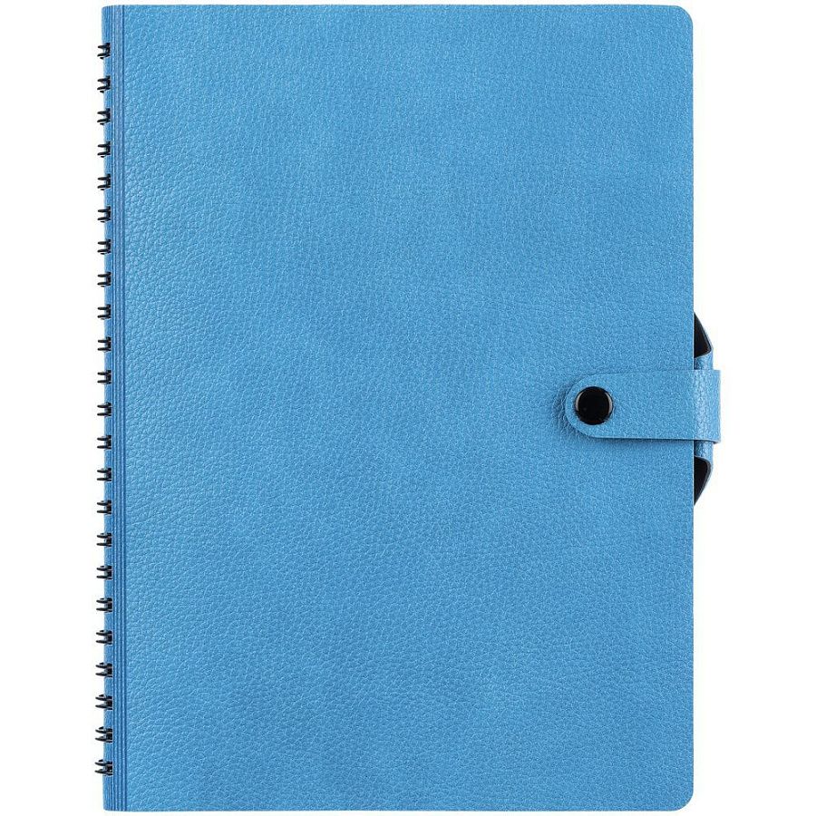 Ежедневник с гибкой обложкой, выполнен из материалов La Fite, голубой JJ и Waltz черный АА.