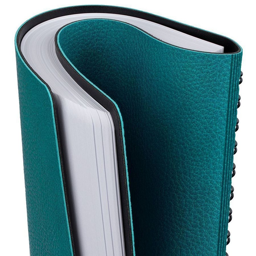 Ежедневник с гибкой обложкой, выполнен из материалов La Fite, цвет морской волны II и Waltz черный АА.