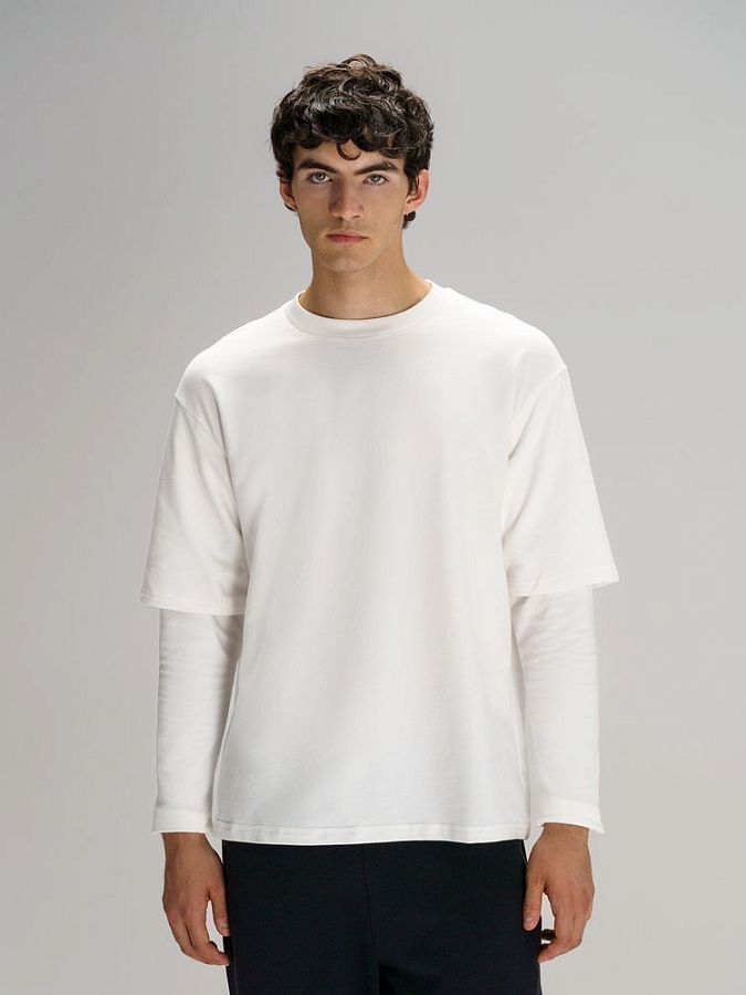 Футболка оверсайз с двойным рукавом Kosmos, молочно-белая, артикул 19180.60
