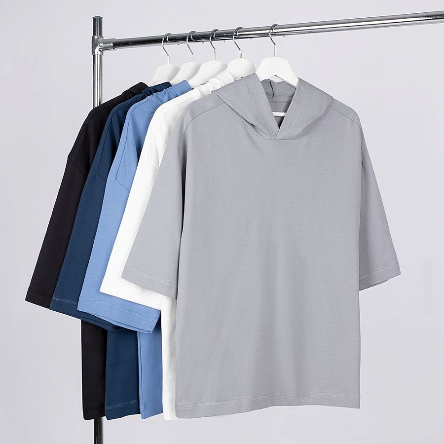Нестандартная футболка Neofit с капюшоном создана для тех, кто следит за трендами и ценит комфорт. Фигурные рукава по передней полочке подчеркивают уникальность изделия, а продуманная конструкция рукавов реглан сзади обеспечивает свободу движений.