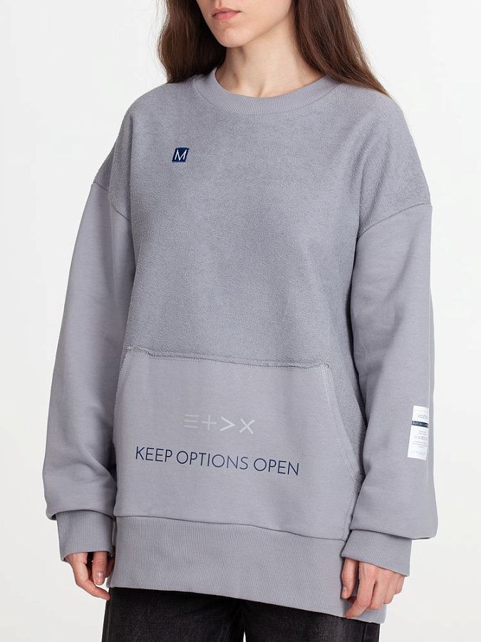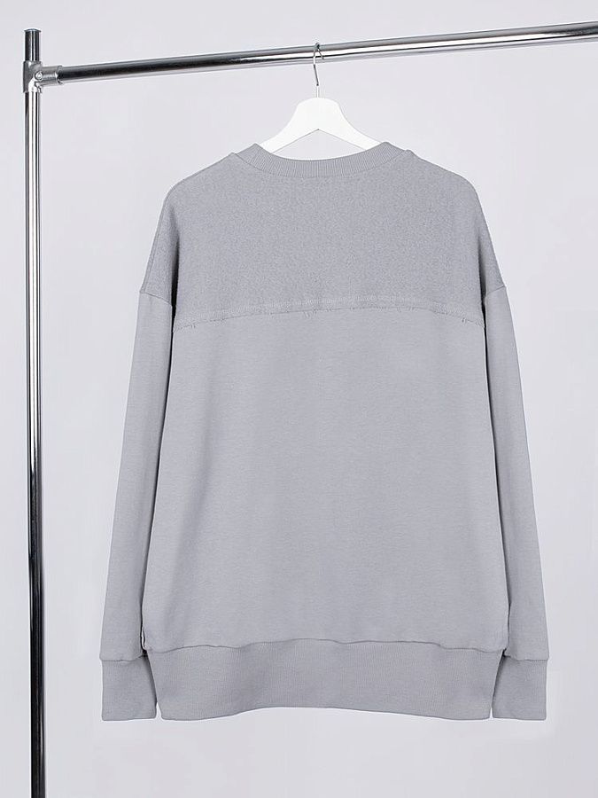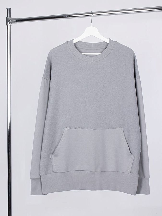 Благодаря особой конструкции, где часть деталей — перед и спинка — вывернута наизнанку, свитшот приобретает запоминающийся вид. Так внутренняя, обычно незаметная сторона материала превращается в лицевую: миниатюрные петельки бывшей изнанки становятся настоящим украшением толстовки, добавляя ей оригинальности и эффект невероятно приятной плюшевости.