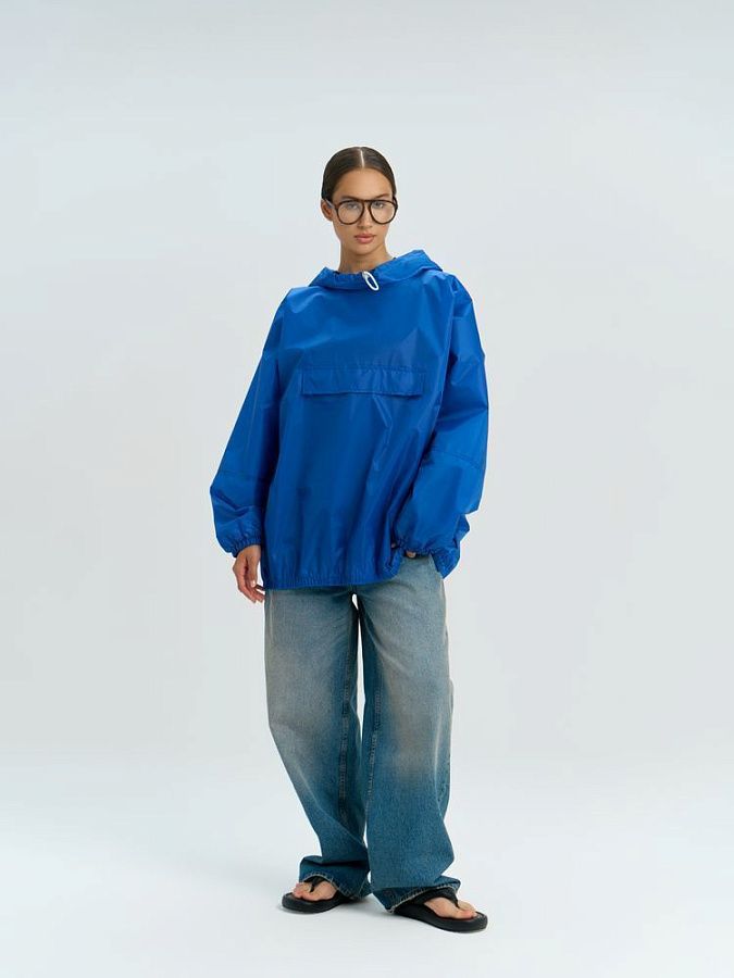 Дождевик-анорак унисекс укороченный с капюшоном из ткани таффета.