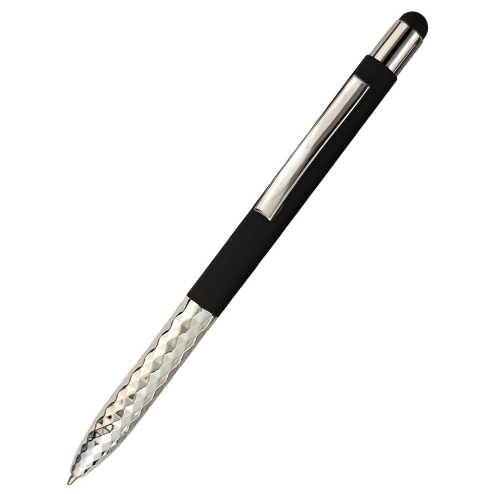 Ручка Party выделяется волнистой текстурой поверхности в области хвата. Это не только придаёт ей игривый оригинальный вид, но и подарит владельцу приятные тактильные ощущения. Эта часть ручки сделана из пластика. Верхняя часть ручки сделана из металла и выполнена в софт-тач. Чернила синего цвета, толщина письма 1,0мм, стержень типа Паркер — это гарантия красивой линии письма и удобства пользования.