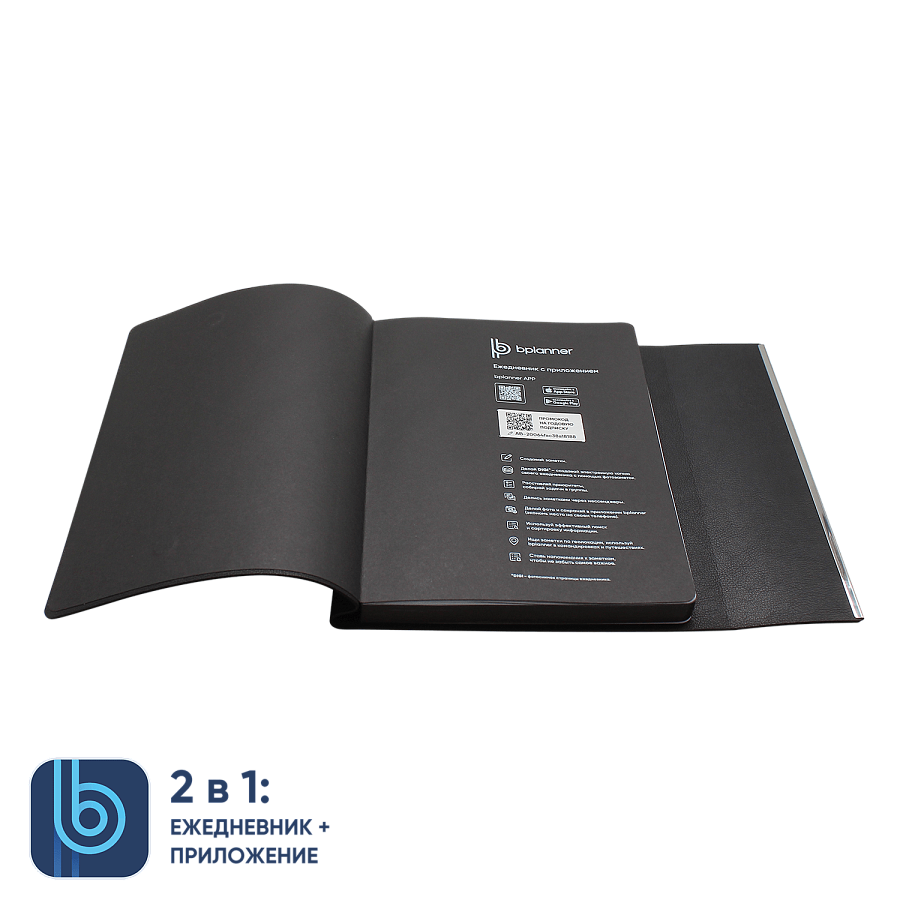 Bplanner 03— третья модель ежедневников Bplanner изготовлена и экоккожи высочайшего качества. Фактура материала приятна на ощупь. Характерной чертой Bplanner 03 является закрывающий клапан с металлическим обрезом. Также у ежедневника предусмотрено полезное дополнение — держатель ручки на корешке. У ежедневников цветной форзац и нахзац. Обрез ежедневника выкрашенв цвет обложки. Ежедневник подходит для УФ-печати и тиснения логотипа компании. На форзаце ежедневника расположен qr-код, который активирует годовой доступ к мобильному приложению.
