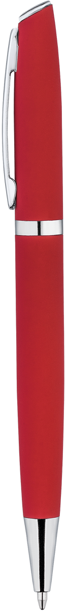 Корпус с софт-тач покрытием. Наконечник, кольцо и верхняя часть пластиковые, хромированные.