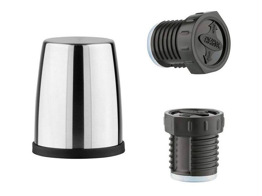 Термос выдержит любые экстремальные ситуации – его корпус усилен специальными бамперами, а крепкое основание с противоскользящей накладкой не боится ударов при падении и обеспечивает устойчивость на любых поверхностях. Усиливает термоизолирующие свойства термоса глубокая винтовая пробка. Герметичная поворотная пробка имеет специальные пазы, позволяющие выливать напиток, не отвинчивая её полностью. На верхней части пробки предусмотрены указатели потока жидкости.