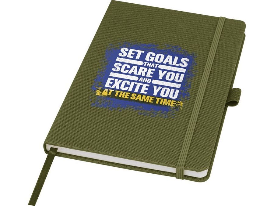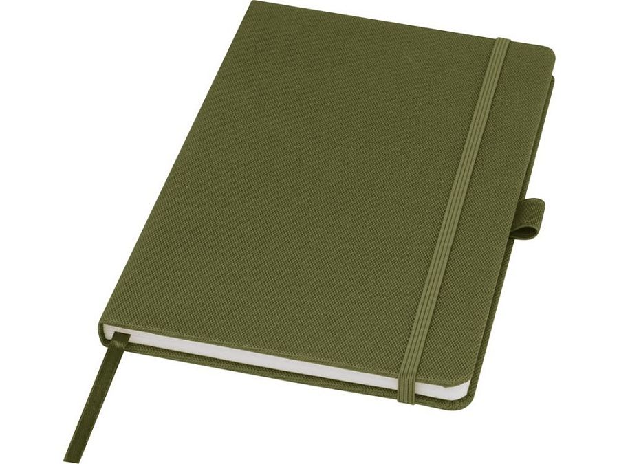 Блокнот формата А5 с обложкой из переработанного ПЭТ. Содержит 80 листов в линию плотностью 70 г/м², изготовленных из переработанной бумаги, с петлей для ручки и лентой-закладкой. Может быть дополнен шариковой ручкой Honua 107757 из переработанного ПЭТ. Переработанный PET пластик.