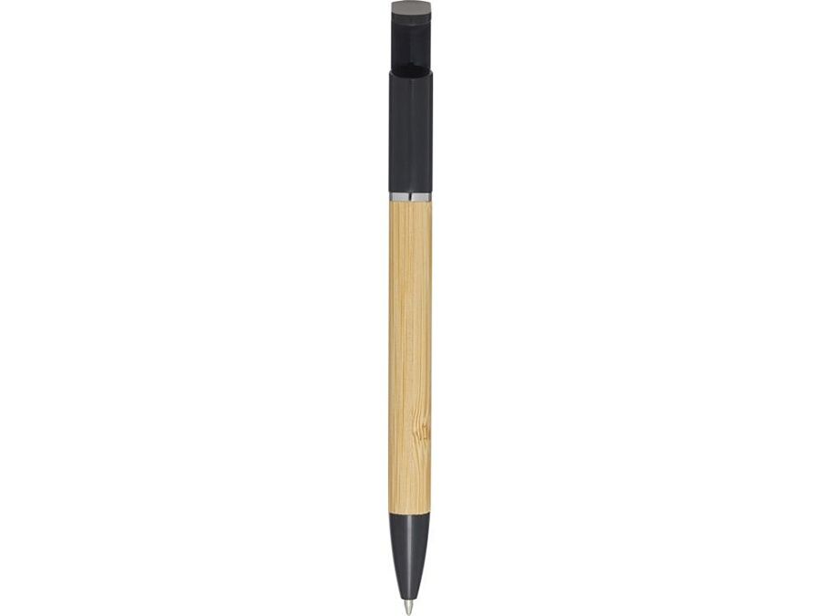 Бамбуковая шариковая ручка, которая также может служить подставкой для телефона. Кнопка и среднее кольцо изготовлены из переработанного пластика, наконечник — из латуни, а корпус — из бамбука, полученного из ответственных источников. Цвет чернил: черный. Длина непрерывной линии: 1000 метров. Размер пера: 1,0 мм. FSC certified bamboo. FSC Mix Credit N5 CU-COC-877277.