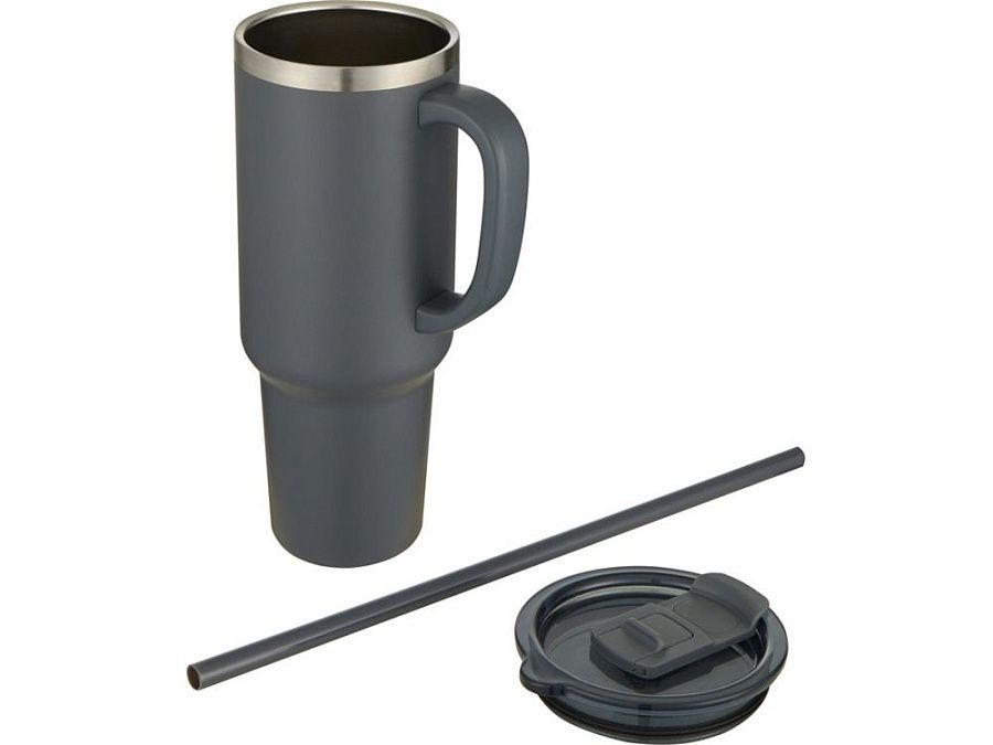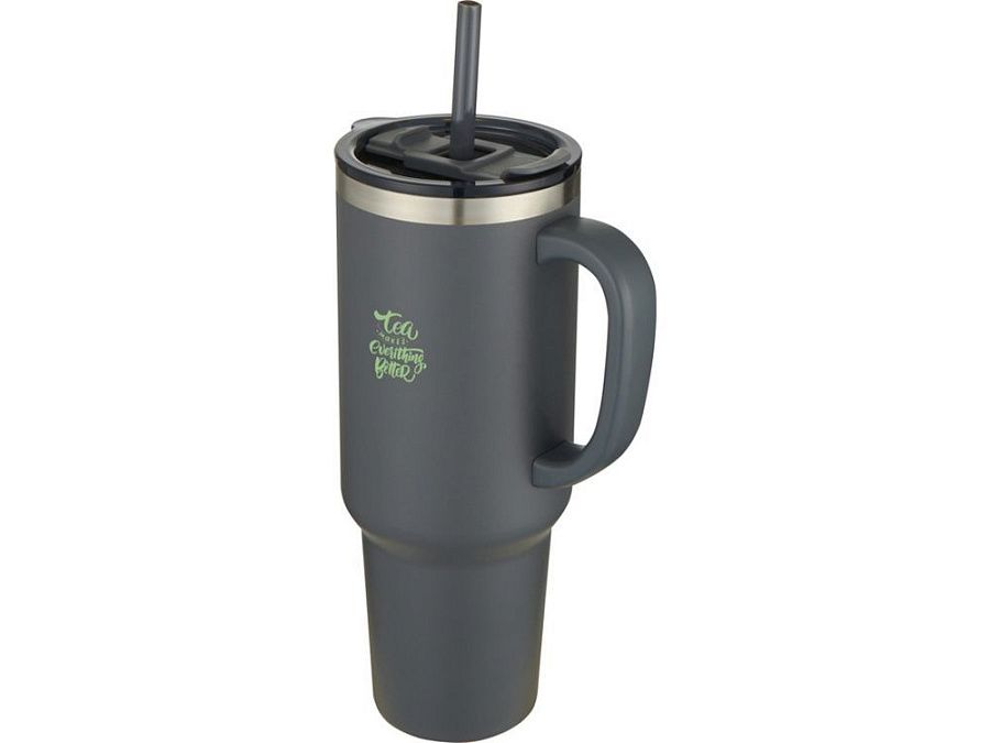 Кружка с двойными стенками из меди, сертифицированной RCS, и вакуумной изоляцией, изготовлена из нержавеющей стали, 91% которой подверглось вторичной переработке, сохраняет напитки холодными в течение как минимум 24 часов. Имеет соломинку Tritan и функцию слайдера крышки для предотвращения проливания. Прижимная поворотная крышка из 100% переработанного пластика надежно удерживает соломинку на месте и может легко поворачиваться, открывая отверстие для напитка. Прочное внешнее порошковое покрытие. Объем: 1200 мл. Только ручная мойка. Recycled stainless steel.