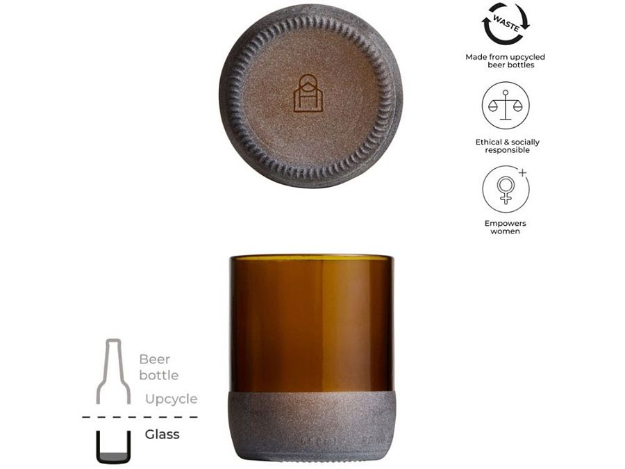 Набор из двух бокалов емкостью 160 мл, изготовленных из переработанных пивных бутылок. Поставляется в подарочной коробке. Переработанное стекло.
