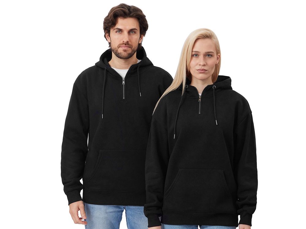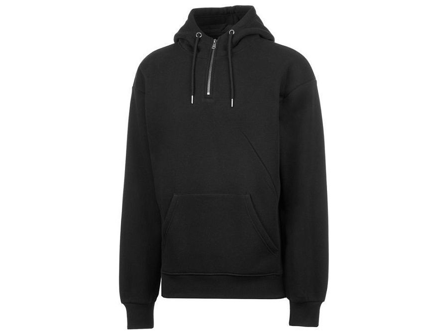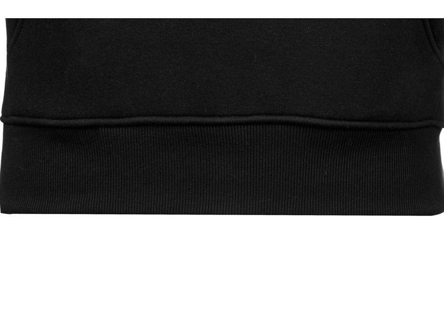 Худи с капюшоном ворот на молнии. Шнур в капюшоне с металлическими наконечниками. Отделка горловины спинки внутри тесьмой, Риб 2х2 по низу изделия и манжетам. Удобный карман кенгуру.