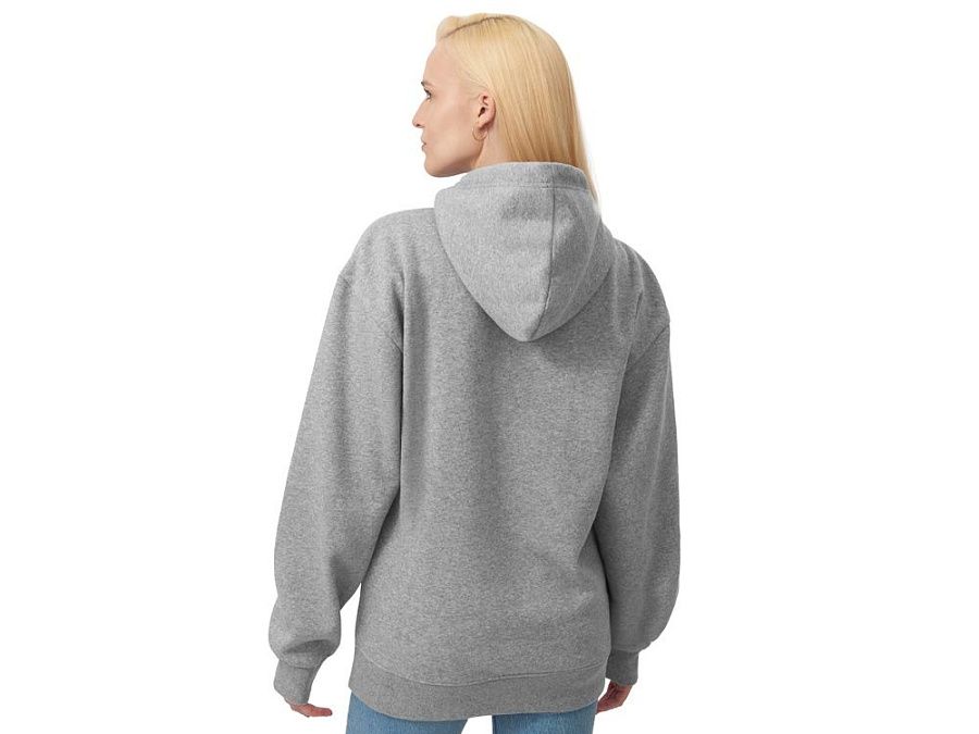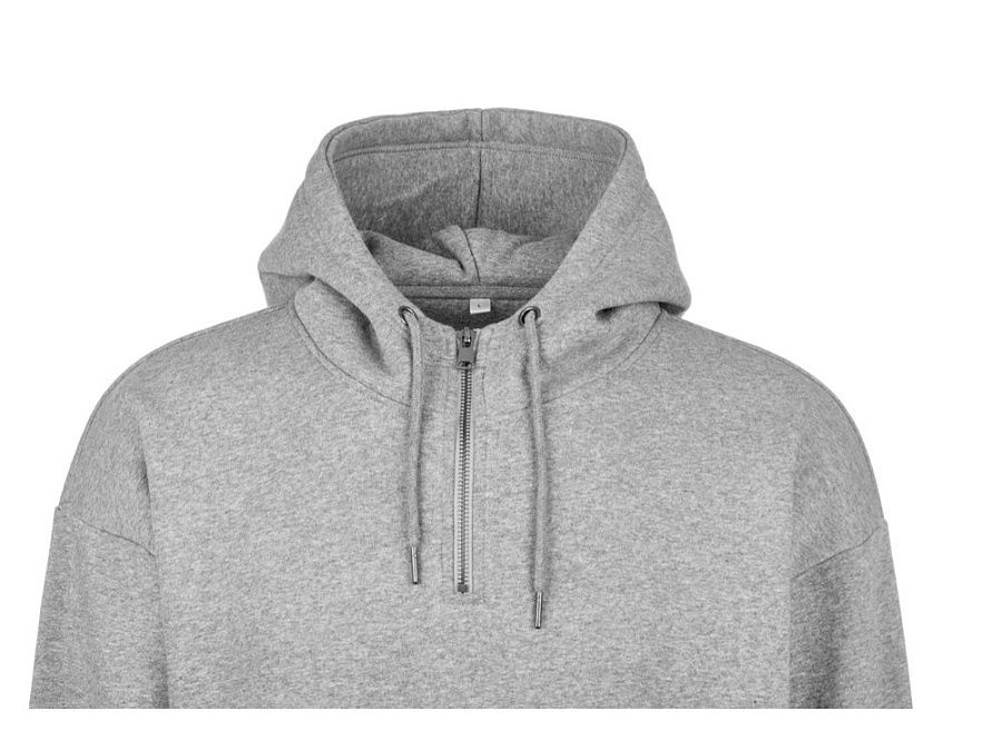 Худи с капюшоном ворот на молнии. Шнур в капюшоне с металлическими наконечниками. Отделка горловины спинки внутри тесьмой, Риб 2х2 по низу изделия и манжетам. Удобный карман кенгуру.