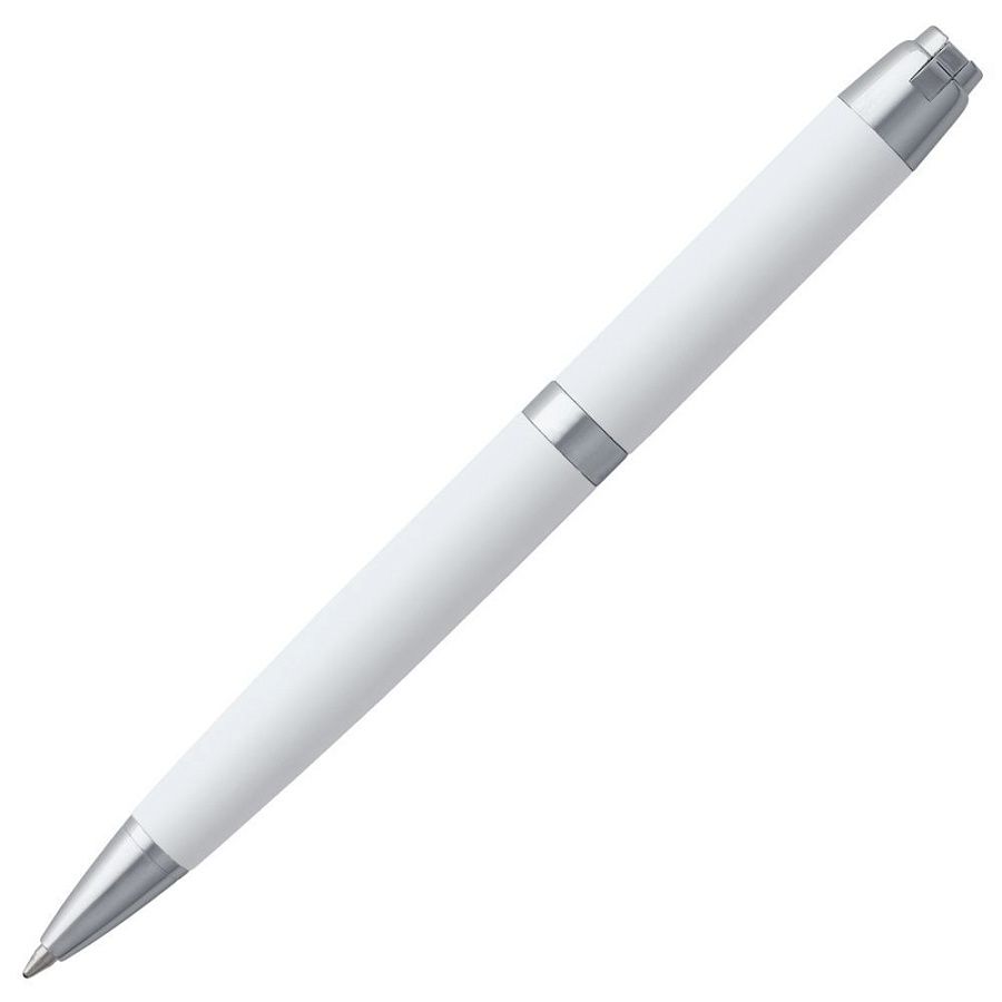 Шариковая ручка классической формы в матовом корпусе с хромированными деталями.