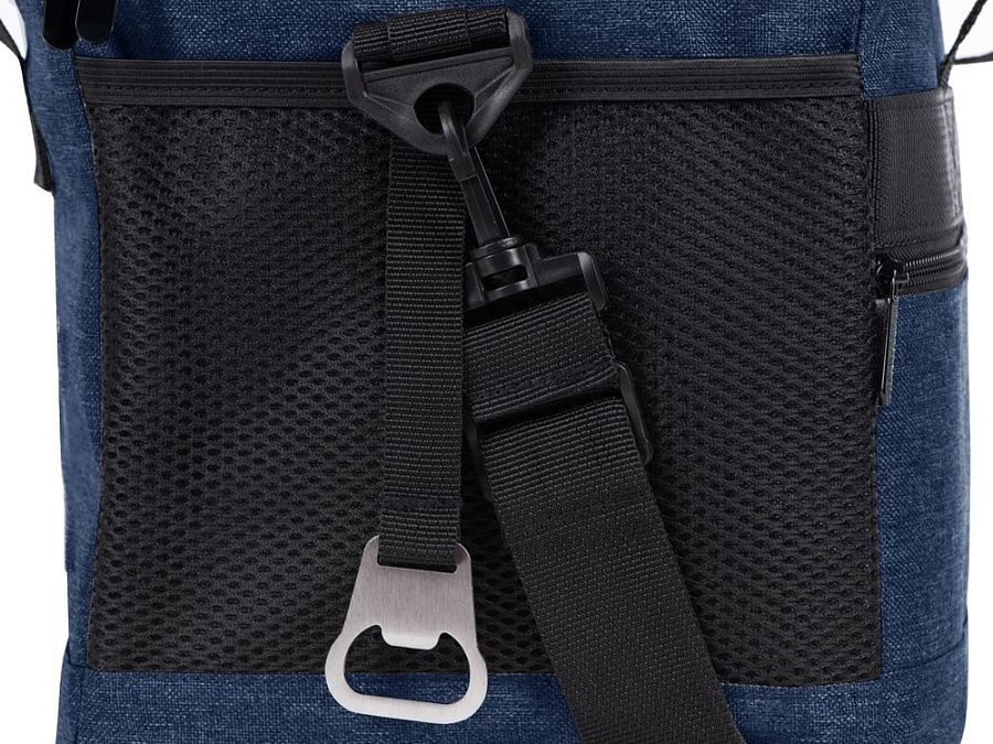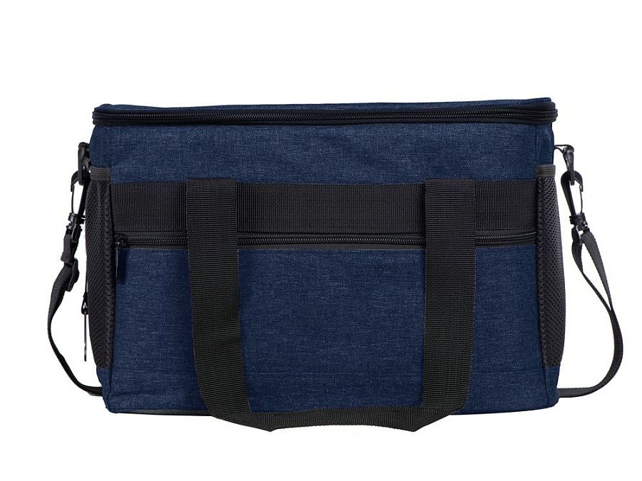 Вместительная сумка-холодильник со специальной конструкцией дна, предотвращающей протекание наружу жидкости от размораживания. Поверхность сумки всегда остается сухой. Основное отделение и карман спереди на молнии. Сбоку 2 сетчатых кармана. Съемный плечевой ремень регулируется по длине. Короткие ручки фиксируются вместе застежкой-липучкой. В комплекте открывалка для бутылок.