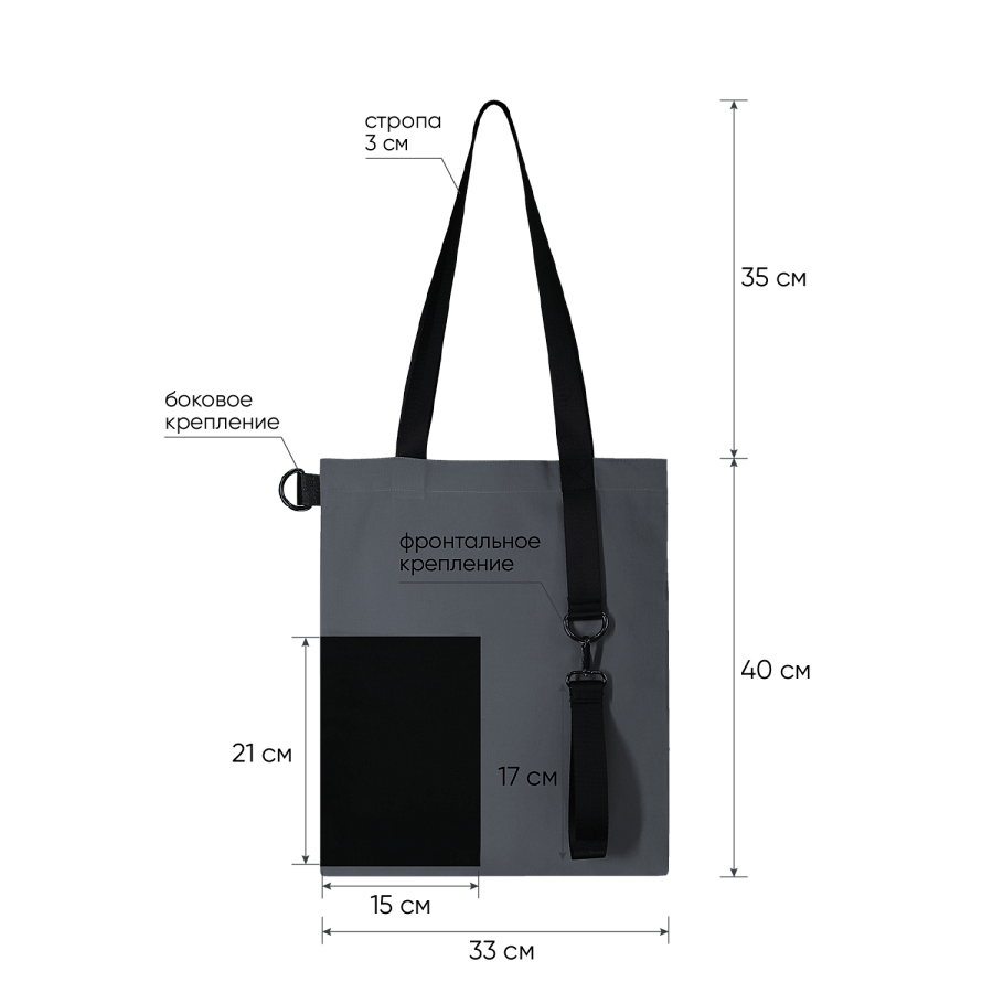 Шопер B5, серый с серыми ручками, артикул 19215.10