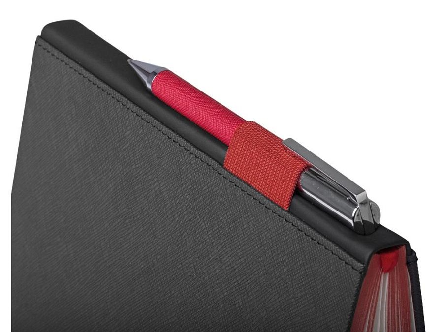 Карман для мелочей, резинки, петли для ручки на корешке и ляссе делают этот блокнот очень удобным и позволяют найти нужный раздел максимально быстро.