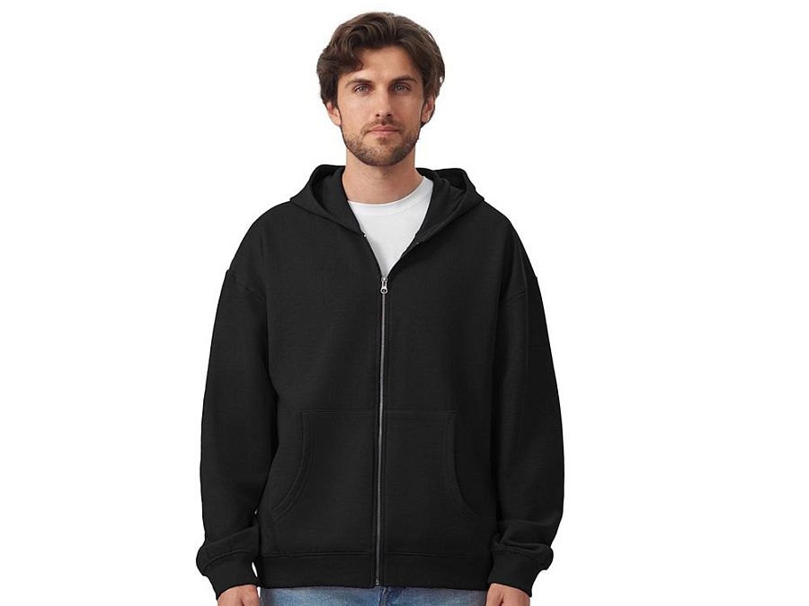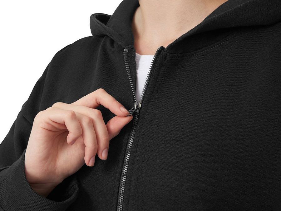 Толстовка на молнии с капюшоном. Риб 2х2 по манжетам и низу изделия.