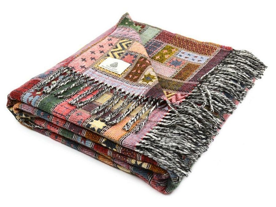 • Плед в стиле «пэчворк» украшен бахромой, оригинальный дизайн органично впишется в интерьер и станет стильным украшением вашего дома. Постелите плед на диван или на кровать, возьмите с собой на дачу или используйте плед-покрывало в кресле-качалке.