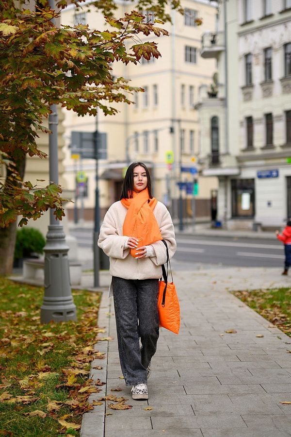 2. Шарф Bubble - отличается тем, что помимо необычной конструкции, имеет фирменную прострочку по всей длине, он объемный, благодаря синтепону и имеет ту же цветовую линейку, что и шоппер Bubble.