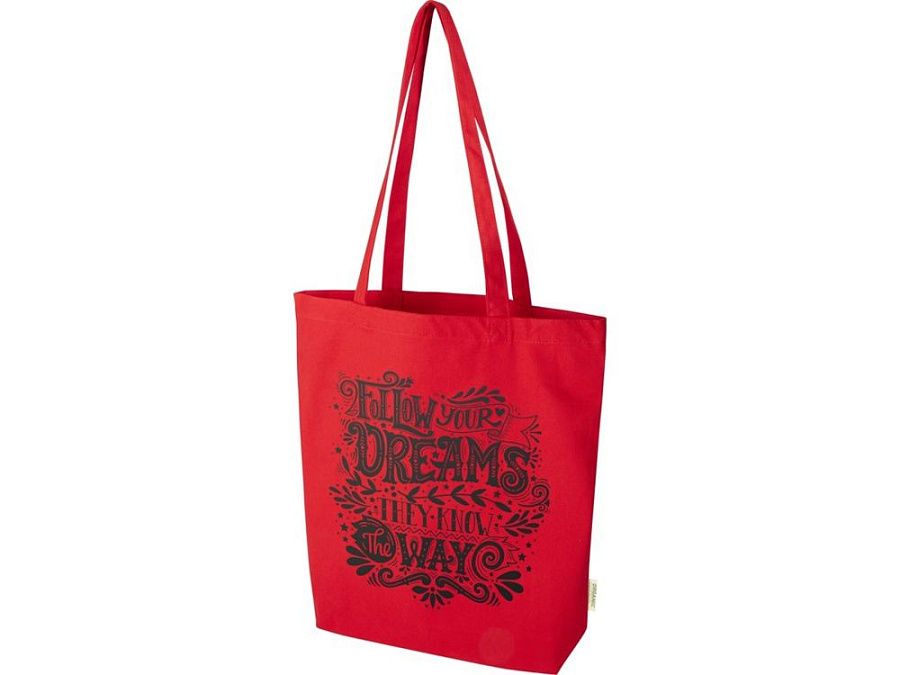 Эко-сумка Orissa с широким дном и длинными ручками, изготовленная из 100% органического хлопка, сертифицированного согласно GOTS, плотностью 270 г/м², станет более ответственным и долговечным выбором для ваших повседневных нужд. Благодаря широкому дну в нем предусмотрено дополнительное место для самых необходимых вещей на любой случай — от похода по магазинам до повседневной прогулки. Объем: 10 л. Органический хлопок.