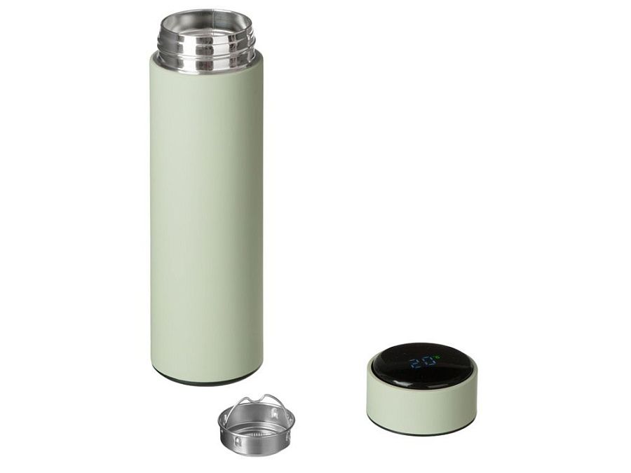 Вакуумный термос «Module X» не только сохраняет ваши напитки горячими, но и показывает, насколько они горячие! Уникальная особенность термоса — это сенсорный индикатор температуры, расположенный в крышке. Чтобы узнать температуру внутри термоса, достаточно прикоснуться к поверхности крышки. Батарейку CR2032 по истечении срока работы (1-2 года) можно заменить — для этого открутите верхнюю часть крышки против часовой стрелки и аккуратно поменяйте элемент питания.