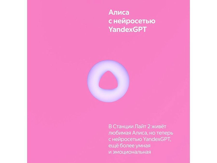 В Станции Лайт 2 живёт любимая Алиса, но теперь с нейросетью YandexGPT, ещё более умная, функциональная и эмоциональная. День за днём, детям и взрослым её компания никогда не наскучит.