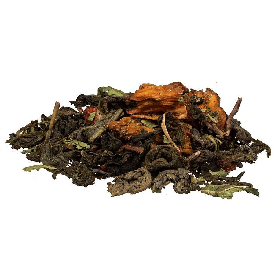 Состав: чай зеленый с ананасом и соком ананаса (чай зеленый байховый крупнолистовой, кусочки ананаса, сок ананаса), клубника сублимированная, мята сушеная, ароматизатор натуральный «Клубника».