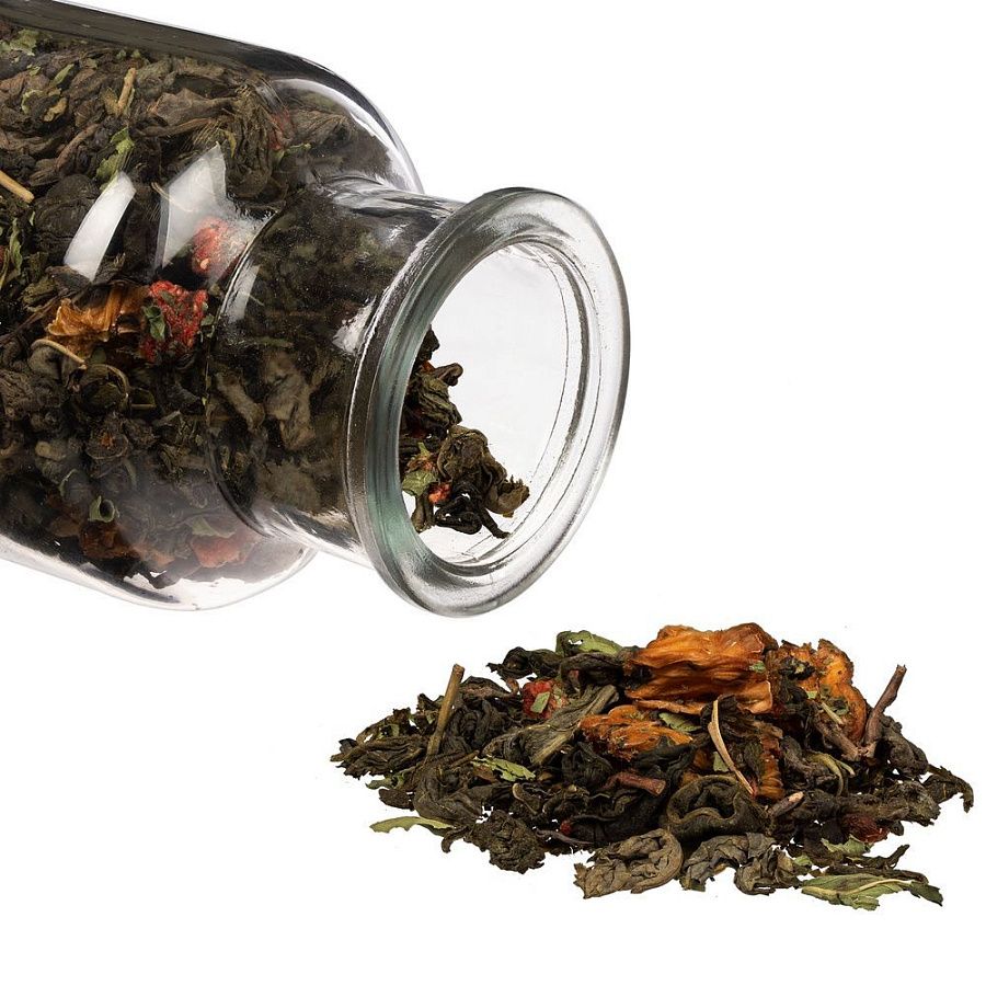 Зеленый крупнолистовой чай с кусочками ананаса, сублимированной клубникой и сушеной мятой обладает многогранной палитрой вкуса и аромата. В состав чая входят только натуральные ингредиенты, а чайные листья предварительно вымачиваются в соке ананаса: вкус напитка становится особо насыщенным и обогащенным. «Сокочай» станет прекрасным подарком для любителей необычных вкусовых сочетаний и здорового образа жизни.