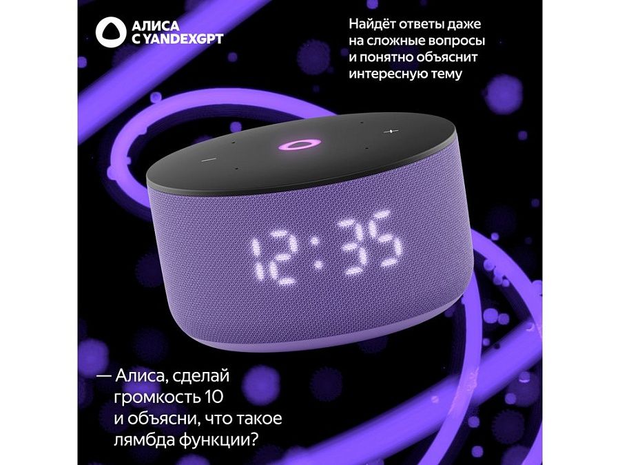 Благодаря более мягкой, цельной и гармоничной форме корпуса Станция Мини 3 отлично смотрится в любом современном интерьере. Цветовая палитра умной колонки тоже обновилась: можно выбрать классические чёрный и серый, а для ценителей акцентов подойдёт пастельный фиолетовый оттенок.