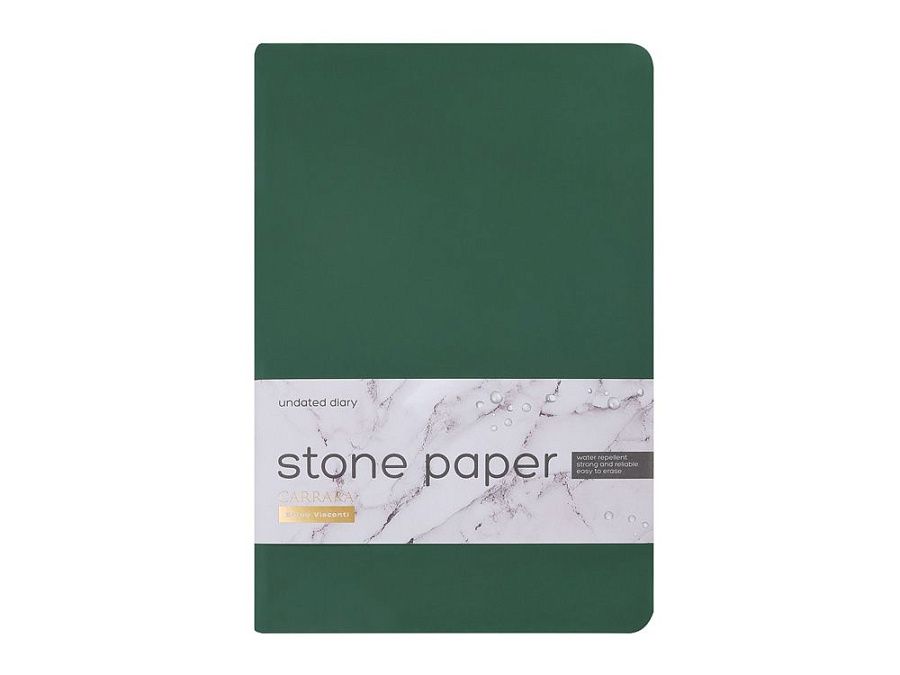 Уникальность недатированного ежедневника Carrara от Bruno Visconti — в его блоке. Он изготовлен из каменной бумаги плотностью 144 г/кв.м, отличающейся особой гладкостью и повышенной прочностью. Она не боится воды и пролитого кофе, достаточно просто протереть сухой салфеткой.