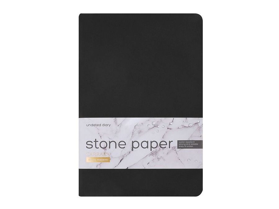 Уникальность недатированного ежедневника Carrara от Bruno Visconti — в его блоке. Он изготовлен из каменной бумаги плотностью 144 г/кв.м, отличающейся особой гладкостью и повышенной прочностью. Она не боится воды и пролитого кофе, достаточно просто протереть сухой салфеткой.