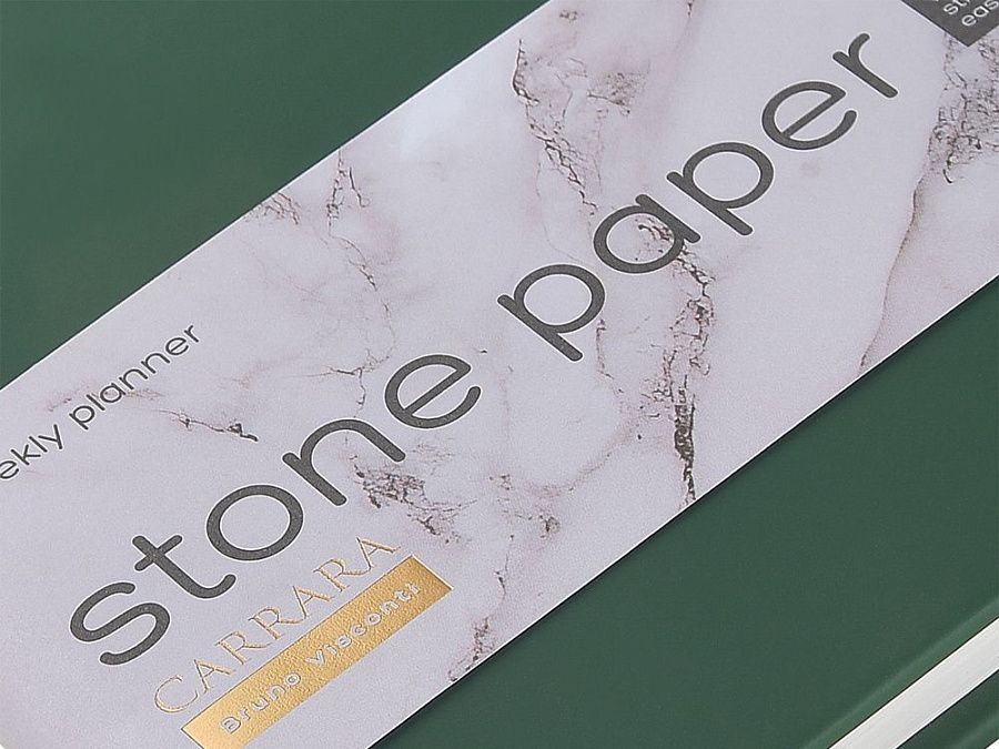 Блок произведен из каменной бумаги плотностью 144 г/кв.м, отличающейся особой гладкостью и повышенной прочностью. Она не боится воды и пролитого кофе, достаточно просто протереть сухой салфеткой.