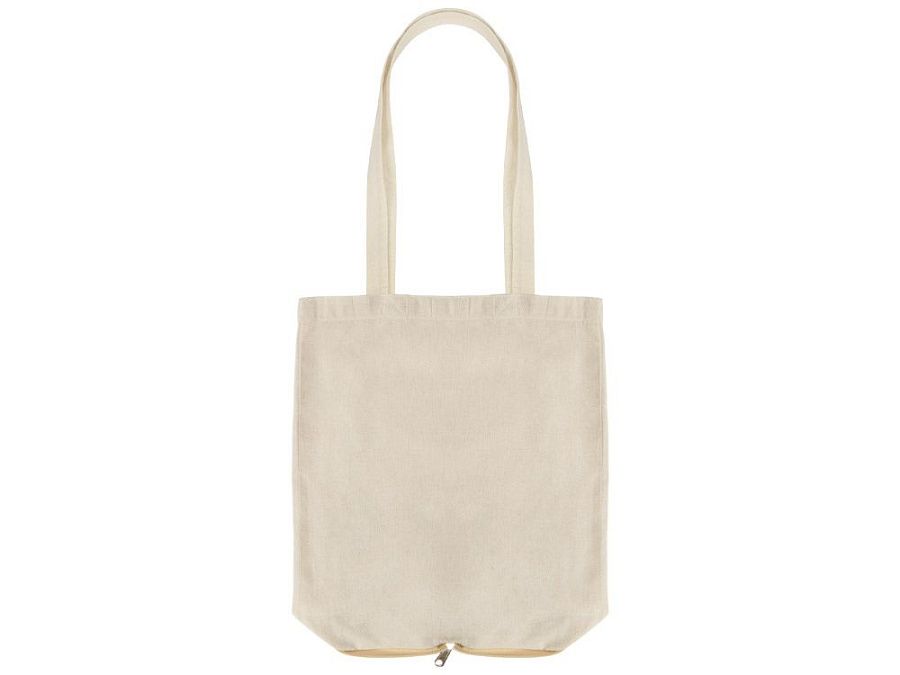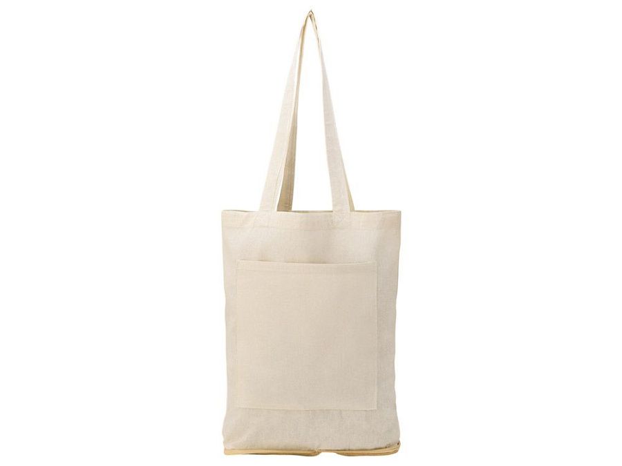 Складная сумка из хлопка с дном из джута. Снаружи большой вместительный карман. В сложенном виде закрывается на молнию.