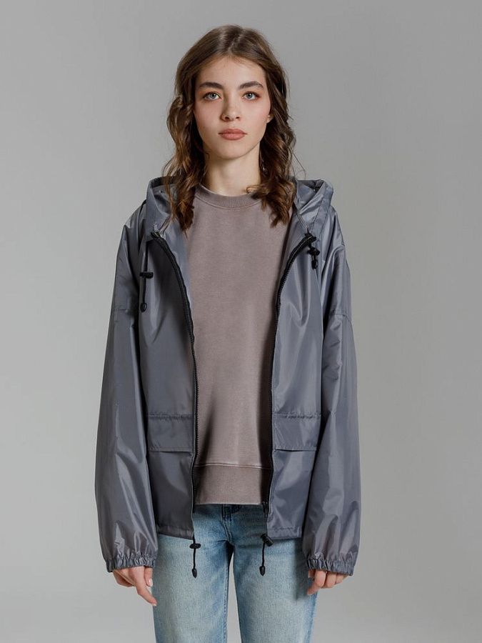 Дождевик-анорак Hard Work, укороченный, серый, единый размер