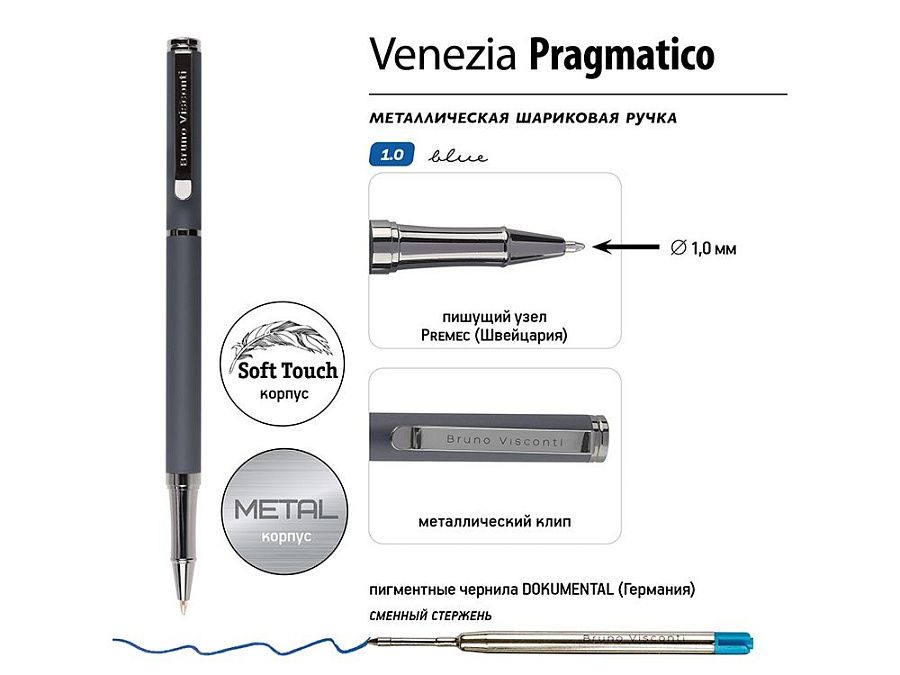 Серия шариковых автоматических ручек Venezia Pragmatico от Bruno Visconti – верх утилитарности и одновременно икона стиля: