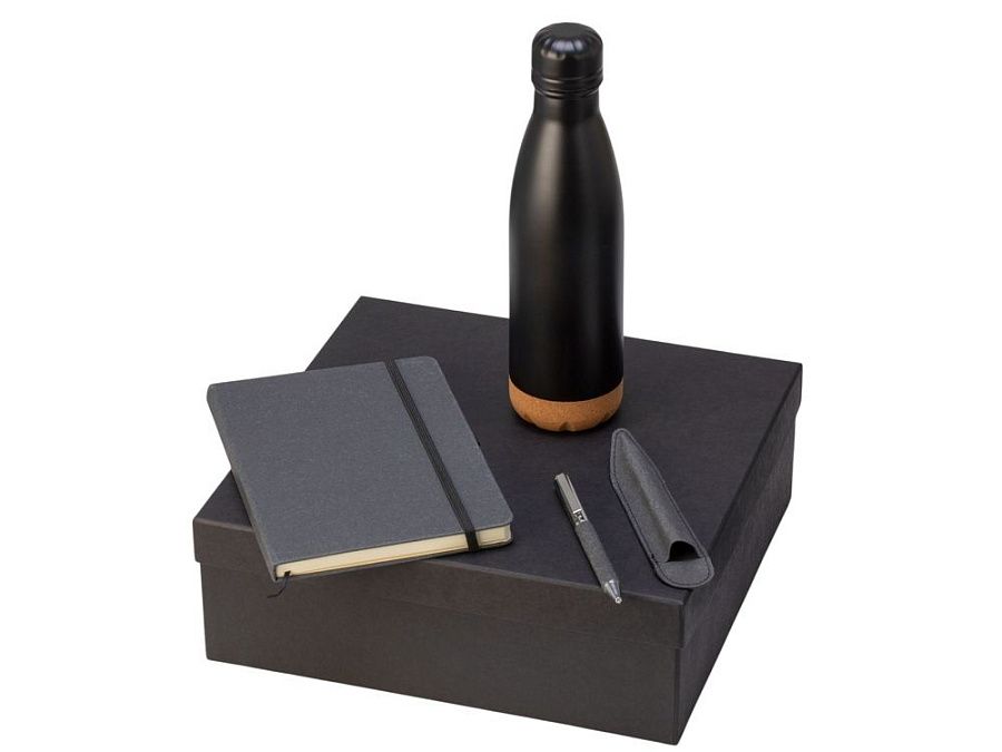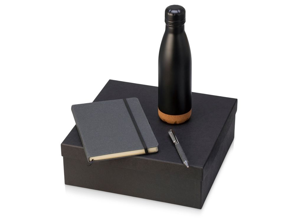 Набор из блокнота, ручки и бутылки для воды - идеальный вариант для подарка сотрудникам или клиентам.