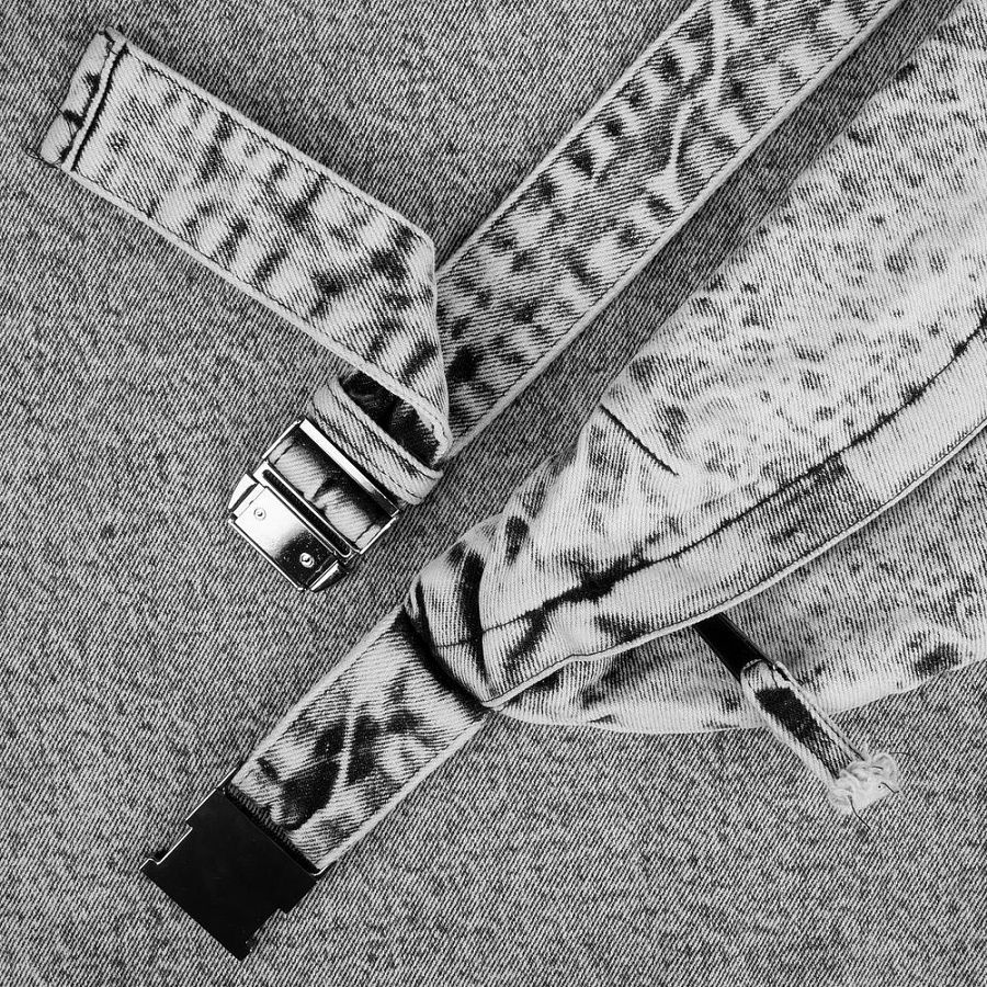 Базовая поясная сумка из джинсовой ткани разработана в рамках единой коллекции и легко собирается в комплекты. Специально спроектированные лекала и технологии пошива открывают простор для любых вариантов кастомизации и нанесения изображений. На видимой части изделий нет лейблов с айдентикой бренда, а название бренда с уходника легко удалить.