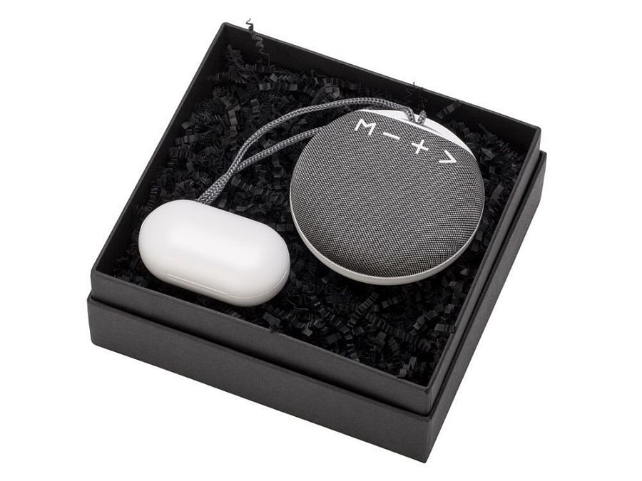 портативная колонка, беспроводные наушники, коробка