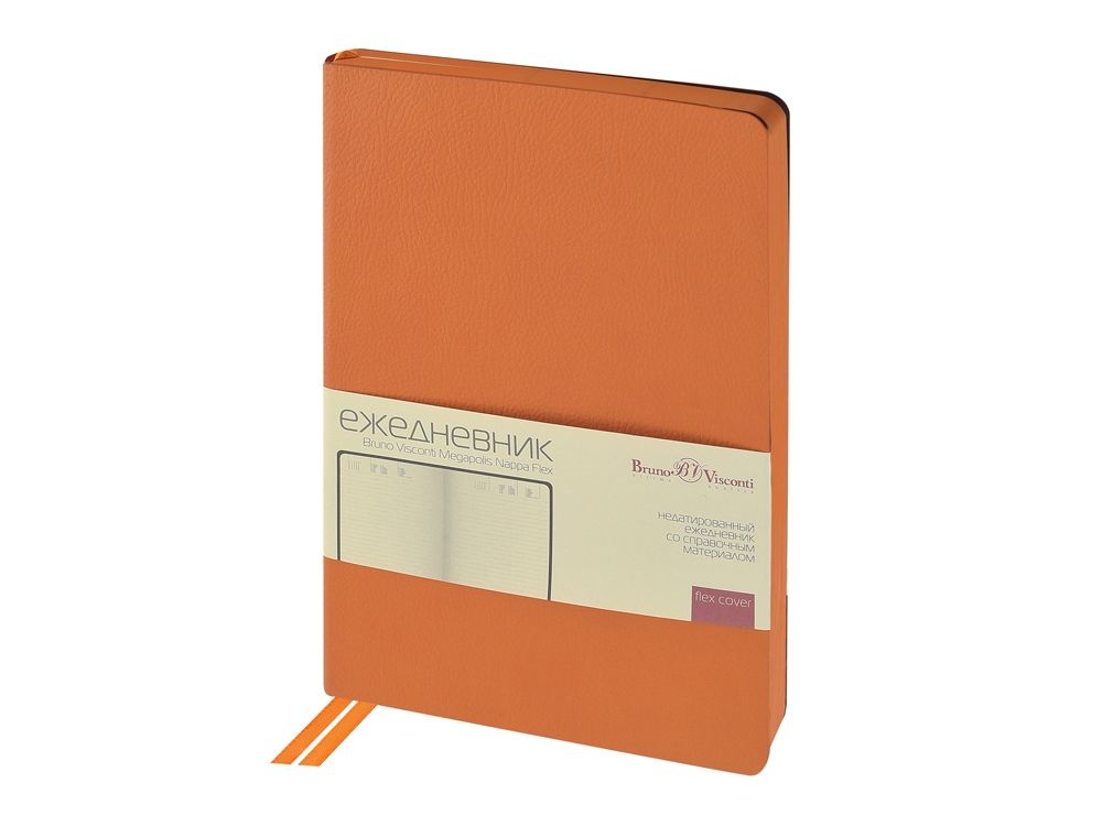 Обложка недатированного ежедневника "Megapolis Nappa Flex" ТМ Bruno Visconti произведена из искусственной кожи без применения переплетного картона, благодаря чему он легче и изящнее классических. Его можно свернуть в трубочку, обложка и блок не пострадают. При этом, для ежедневника формата А5 доступны те же опции, что и для любых других ежедневников — окрашенный обрез, крупнозернистая фактура искусственной кожи обложки, двойное ляссе 7 мм.