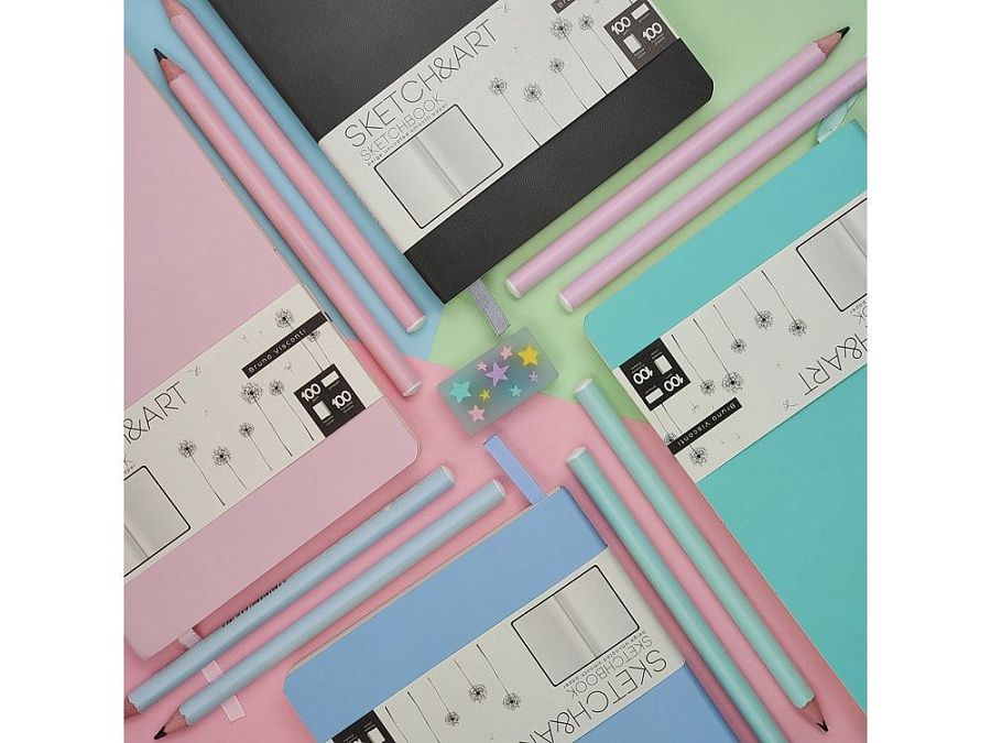 Скетчбук «SKETCH&ART» на 100 листов в книжном переплете от Bruno Visconti – это функциональный блокнот для зарисовок. Гибкая обложка из искусственной кожи с великолепным качеством отделки и скругленными углами – образец стиля и элегантности, комфорта и практичности. Скетчбук сохраняет первоначальный внешний вид даже при активном использовании и дарит приятные тактильные ощущения благодаря бархатистому покрытию Soft Touch. Формат А5 позволяет брать скетчбук в дорогу, он легко помещается в дамскую сумочку, а значит всегда будет у вас под рукой. Листы блока плотностью 100 г/кв.м, бежевого цвета - приятный и выгодный фон для создания эскизов и зарисовок цветными и чернографитными карандашами, ручками, линерами. Художественно оформленные форзац и нахзац с выделенным полем для персональных данных - дополнительное преимущество скетчбука.