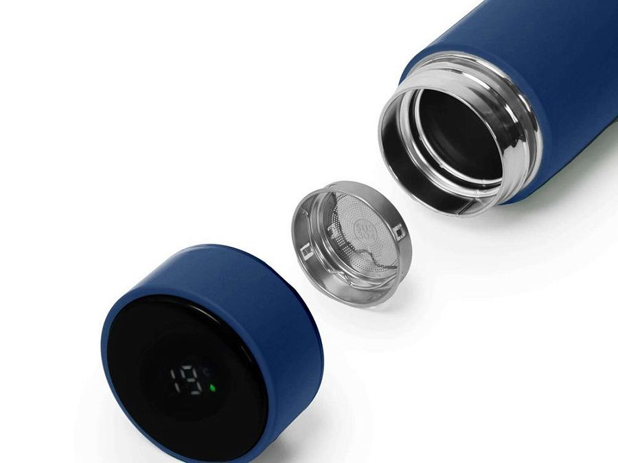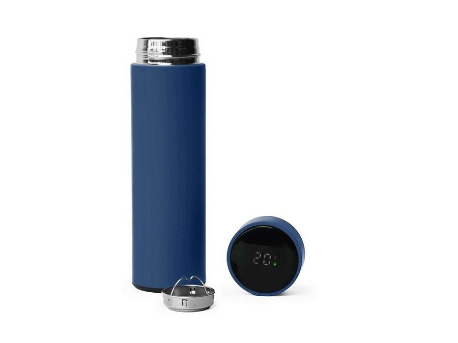 Термос из нержавеющей стали, покрытый цветным soft touch, с крышкой, в которой встроен термометр и LED дисплей, показывающий температуру внутри термоса. Объем: 500 мл. Упаковка: каждый термос в крафт коробке.