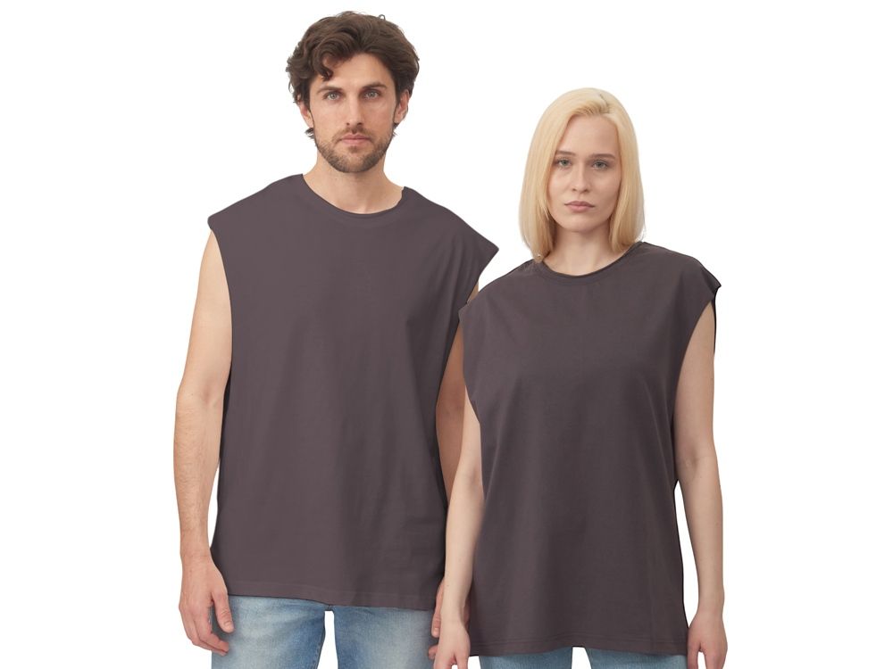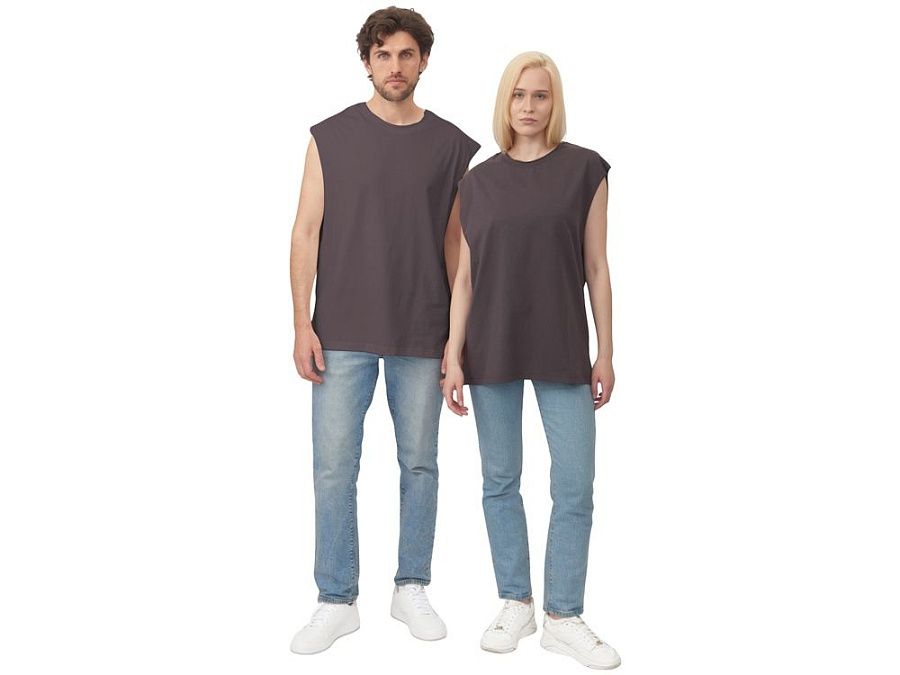 Майка унисекс расширенного силуэта со спущенным плечом, выполнена из плотного джерси 180гр.