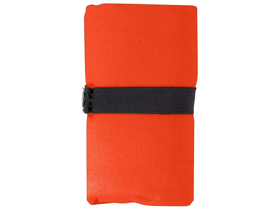 Удобная сумка-шоппер из переработанного хлопка. Можно хранить в сложенном виде и фиксировать с помощью эластичной ленты, застегивающейся на кнопку.