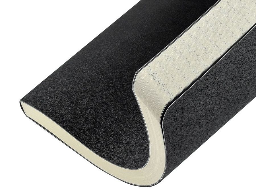 Классическое воплощение минимализма: формат А5, гибкая обложка, скругленный угол блока и обложки, ровные, четкие линии, отсутствие декоративных элементов. Внутренний блок изготовлен из бежевой бумаги плотностью 70 г/м2 и, помимо раздела для планирования рабочего времени, включает в себя 12 страниц справочной информации.